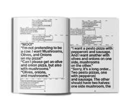 The aim of this project was to design a cookbook that would be both aesthetically pleasing and captivating, highlighting a specific dish. I chose to use dialogue from a mobile game dedicated entirely to pizza, where the objective is to cook for customers. This game offers a wide variety of toppings, which inspired me to integrate these dialogues into my book, focused on the world of pizza. At the end of the book, I was asked to do a statistical part related to the dish we had chosen. My statistics are based on all the possible ingredients on a pizza.